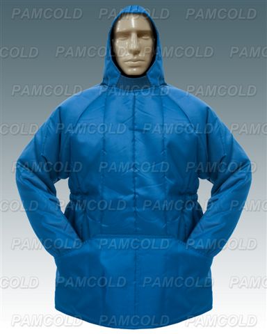 Japona térmica nylon azul/branca, confeccionada em tecido de nylon resinado, forrada internamente com manta acrílica 100% poliéster , sem fechamento, com capuz, bolsos frontais, elástico nas laterais, malha sanfonada para ajuste no pulso e pescoço. Tamanhos : P - M -G - GG - EGG Tamanhos especiais sob medida CA 37721